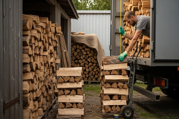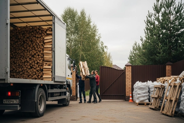 Водитель привезет дрова точно в срок, а грузчики помогут с разгрузкой и укладкой.