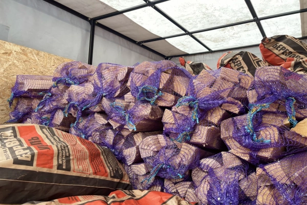 Отбираем качественные поленья, фасуем (при заказе в сетках) или загружаем навалом.